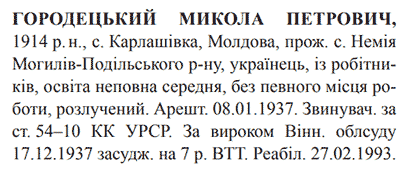 54-10 КК УССР. Вінницьким облсудом засуджений до 7 років ВТТ