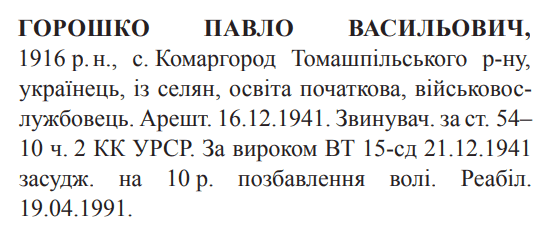 Реабілітований: Військовою прокуратурою Київського ВО 19.04.1991 Реабілітовані історією