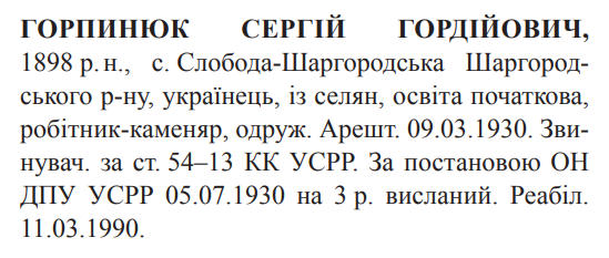 (Можливий варіант написання прізвища: Горпенюк) Реабілітовані історією