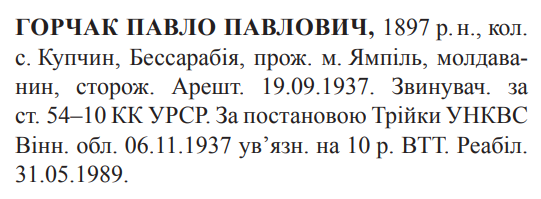 Реабілітований: Вінницькою облпрокуратурою 31.05.1989 Реабілітовані історією