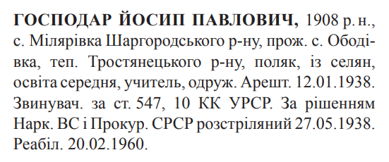 Йосип Господар розстріляний 27.05.1938
