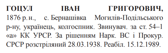(Можливий варіант написання прізвища: Гуцол) Реабілітовані історією