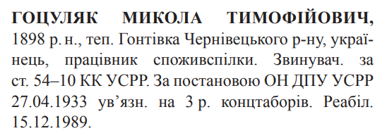 54-10 КК УССР. ОН ГПУ УССР засуджений до 3 років таборів