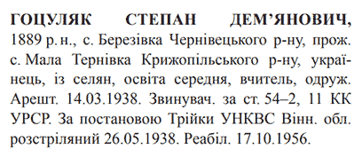 Степан Гоцуляк розстріляний 16.05.1938 р.