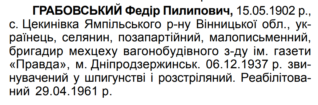 Реабілітований: 29.04.1961. Реабілітовані історією