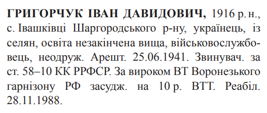 Реабілітований: МВО 28.11.1988 Реабілітовані історією
