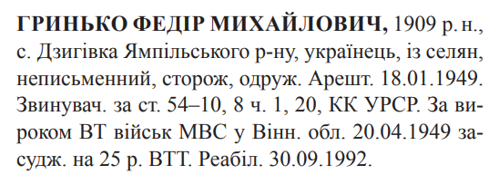 Реабілітований: Вінницьким облпрокурором 30.09.1992 Реабілітовані історією
