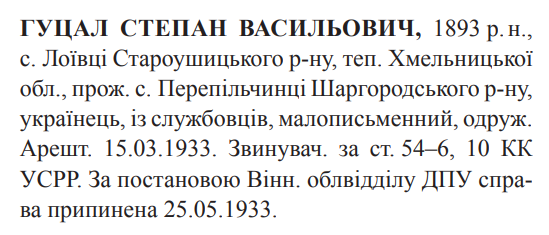 54-10, 54-6 КК УССР. Вінницьким обласним відділом ДПУ справу припинено