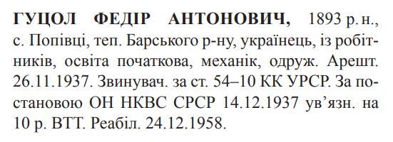 Реабілітований: Вінницьким облсудом 24.12.1958 Реабілітовані історією