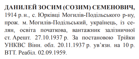 Реабілітований: Вінницьким облсудом 02.09.1959 Реабілітовані історією