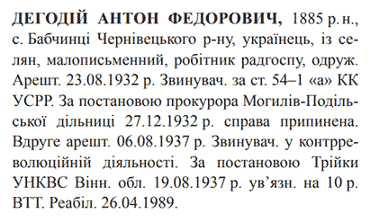 (Можливий варіант написання прізвища: Дегодий) Реабілітовані історією
