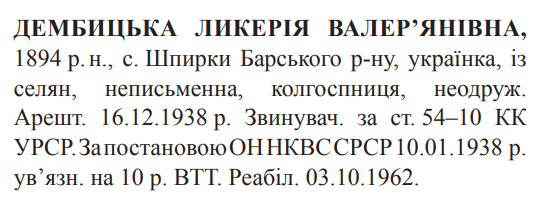 Реабілітована: Вінницьким облсудом 03.10.1962 Реабілітовані історією