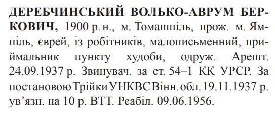 54-1 КК УССР. Трійкою УНКВС Вінницької обл. засуджений до 10 років ВТТ