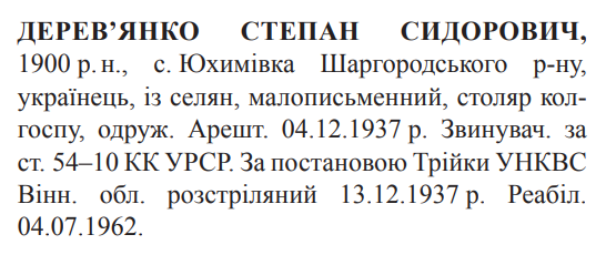 Степан Дерев'янко розстріляний 13.12.1937 р.