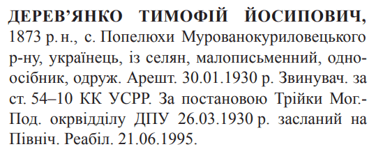 Реабілітований: Вінницьким облпрокурором 21.06.1995 р. Реабілітовані історією