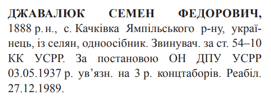 Реабілітований: Вінницькою облпрокуратурою 27.12.1989 р. Реабілітовані історією