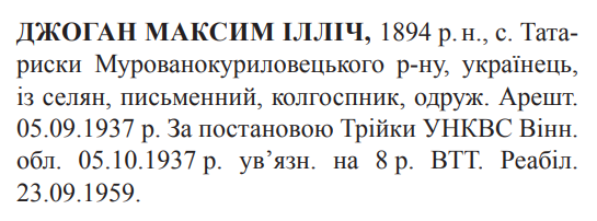 інформація відсутня. Трійкою УНКВС Вінницької обл. засуджений до 8 років ВТТ
