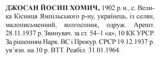 Реабілітований: Верховним судом УССР 31.01.1964 Реабілітовані історією