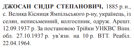 інформація відсутня. Трійкою УНКВС Вінницької обл. засуджений до 10 років ВТТ