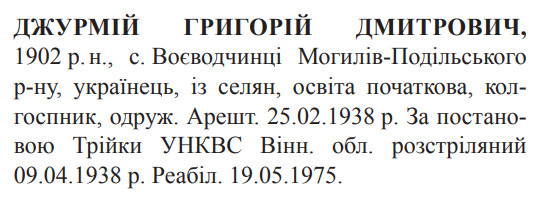 Григорій Джурмій розстріляний 09.04.1938