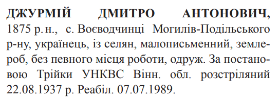 Дмитро Джурмій розстріляний 22.08.1937
