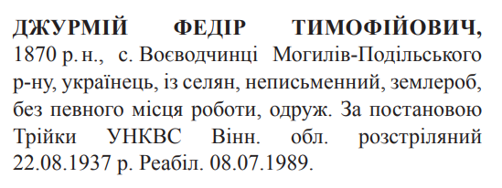 Федір Джурмій розстріляний 22.08.1937
