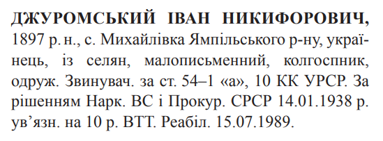 Реабілітований: Вінницькою облпрокуратурою 15.07.1989 Реабілітовані історією