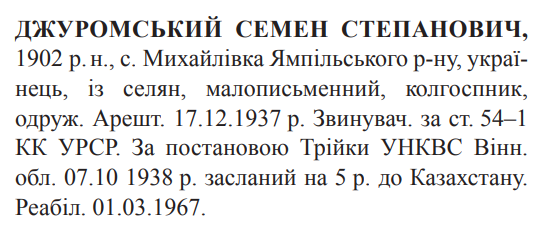 54-1 КК УССР. Трійкою УНКВС Вінницької обл. засуджений до 5 років вислання