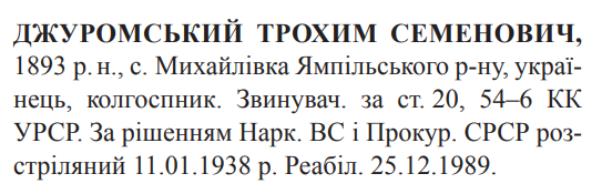 Трохим Джуромський розстріляний 11.01.1938