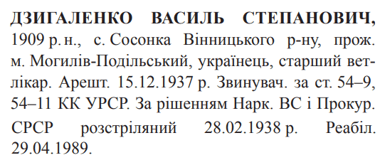 Розстріляний в м. Вінниця 01.03.1938