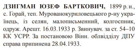 54-10 КК УССР. Вінницьким обласним відділом ДПУ справу припинено