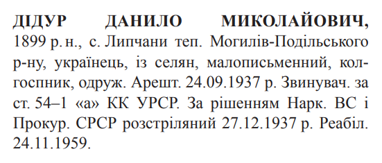 Данило Дідур розстріляний 27.12.1937