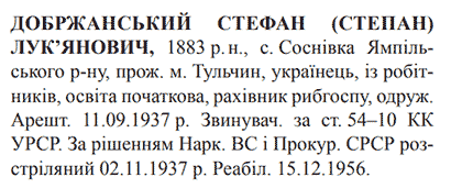 Степан Добжанський розстріляний 02.11.1937 р.