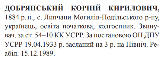 Реабілітований: Вінницькою облпрокуратурою Реабілітовані історією