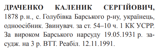 Реабілітований: Генеральною Прокуратурою УССР 12.11.1991 Реабілітовані історією
