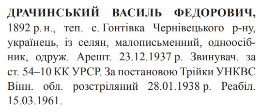 Василь Драчинський розстріляний 28.01.1938