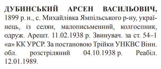 Арсен Дубинський розстріляний 04.10.1938