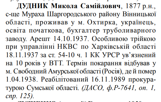 Реабілітований: прокуратурою Сумської обл. 16.11.1989 Реабілітовані історією