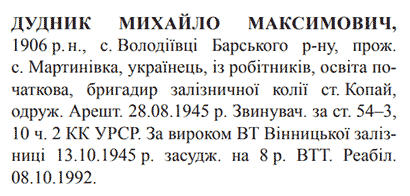 Реабілітований: Вінницькою облпрокуратурою 08.10.1992 Реабілітовані історією