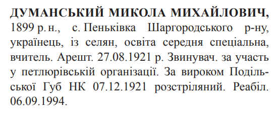 Реабілітований: Вінницьким облпрокурором 06.09.1994 Реабілітовані історією