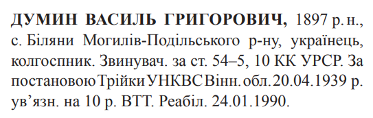 (Можливий варіант написання прізвища: Думін) Реабілітовані історією