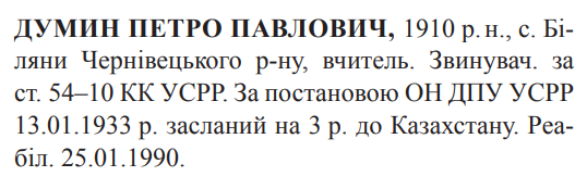 (Можливий варіант написання прізвища: Думін) Реабілітовані історією