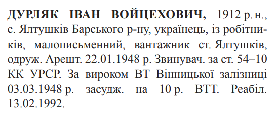 Реабілітований: Вінницьким облпрокурором 13.02.1992 Реабілітовані історією