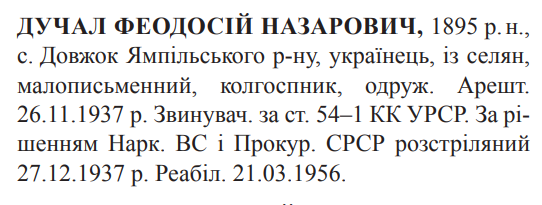 Феодосій Дучал розстріляний 27.12.1937