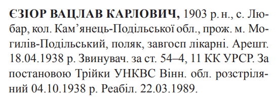 Реабілітований: Вінницькою облпрокуратурою 22.03.1989 Реабілітовані історією