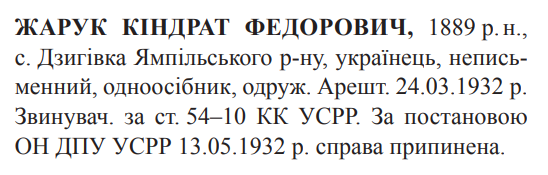 54-10 КК УССР. ОН ГПУ УССР справу припинено