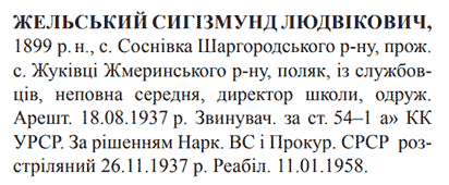 Сигізмунд Жельський розстріляний 26.11.1937