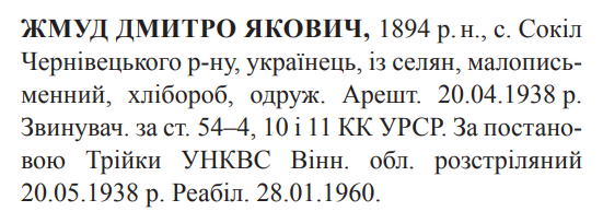Дмитро Жмуд розстріляний 20.05.1938