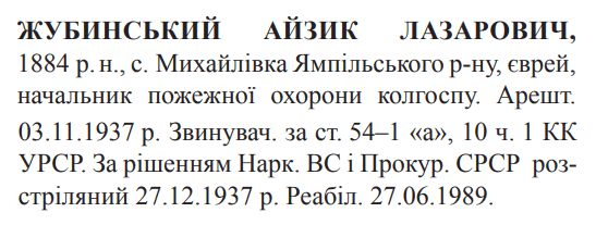 Айзік Жубинський розстріляний 27.12.1937
