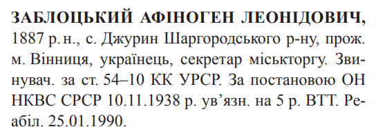 Реабілітований: Вінницькою облпрокуратурою 25.01.1990 Реабілітовані історією